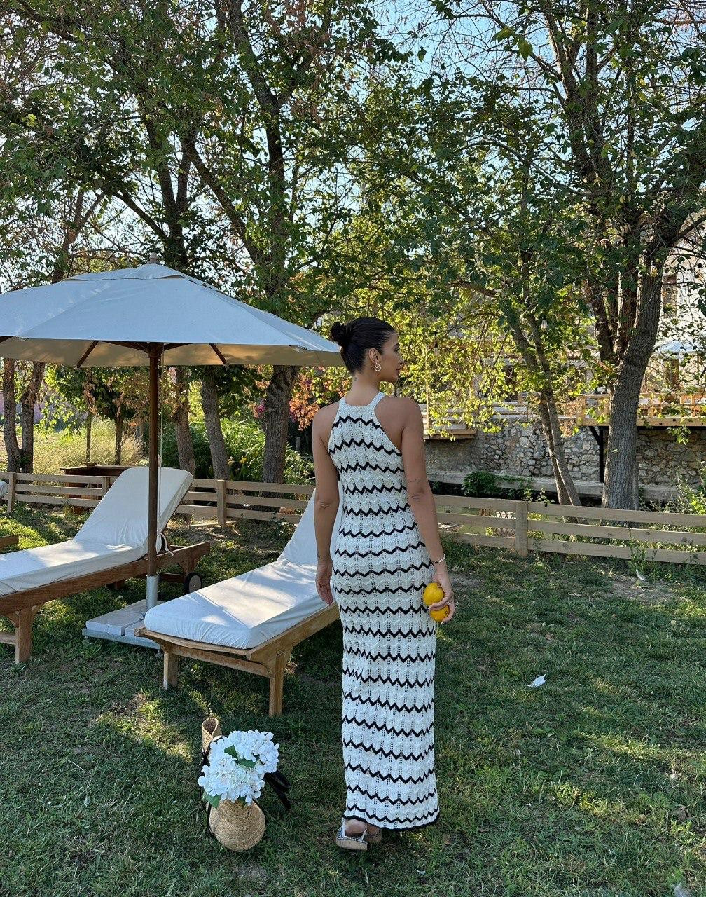 Sleeveless Crochet Zigzag Maxi Dress